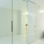 Glazed partitioning wall with Viennese glazing bars made from aluminium profiles, single-glazed.